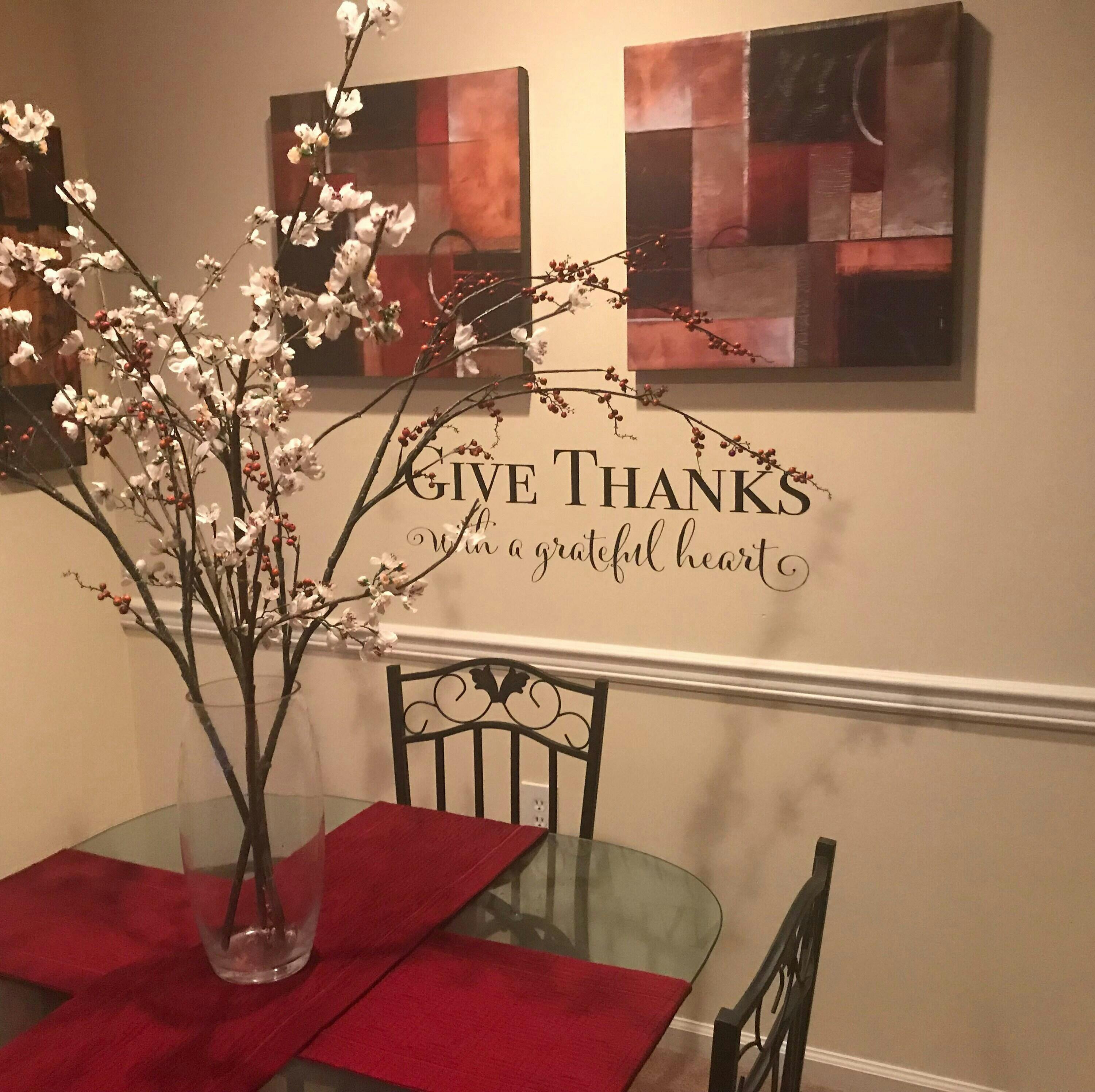 Give Thanks with a Grateful Heart Decal - Give Thanks Quote - Dining Room Decor - Kitchen Wall Art