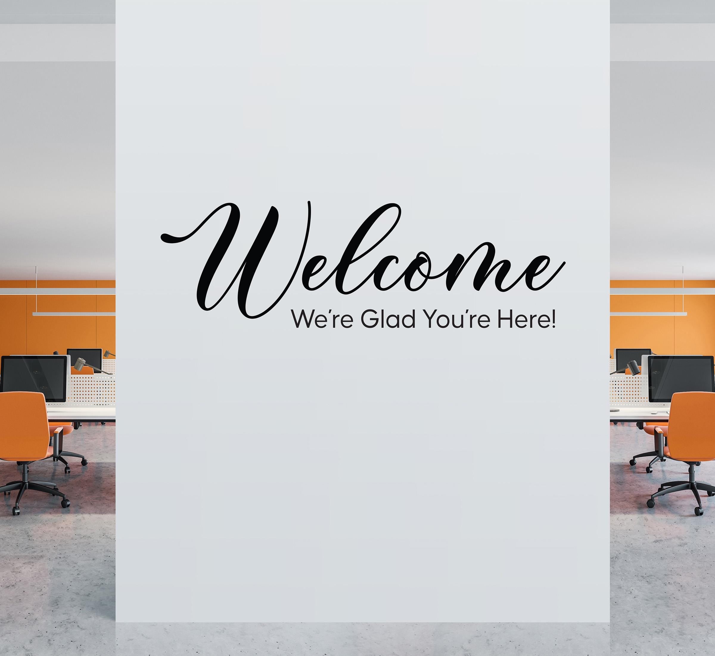 Welcome We're Glad You're Here Decal | Welcome Sign | Business Office Decor