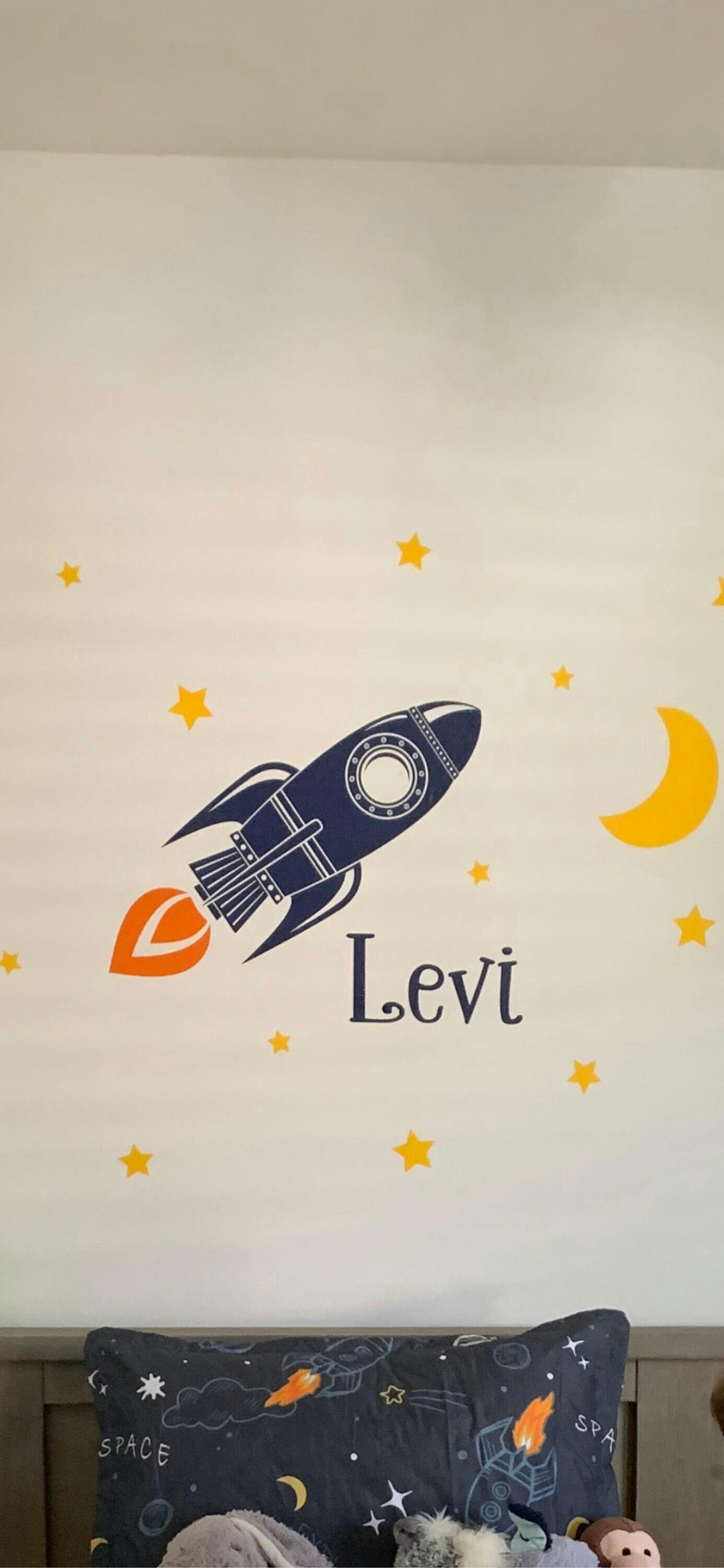 Space Wall Decal - Rocket Decal Set - Boys Name with Moon and Stars Wall Stickers - Bedroom Decor